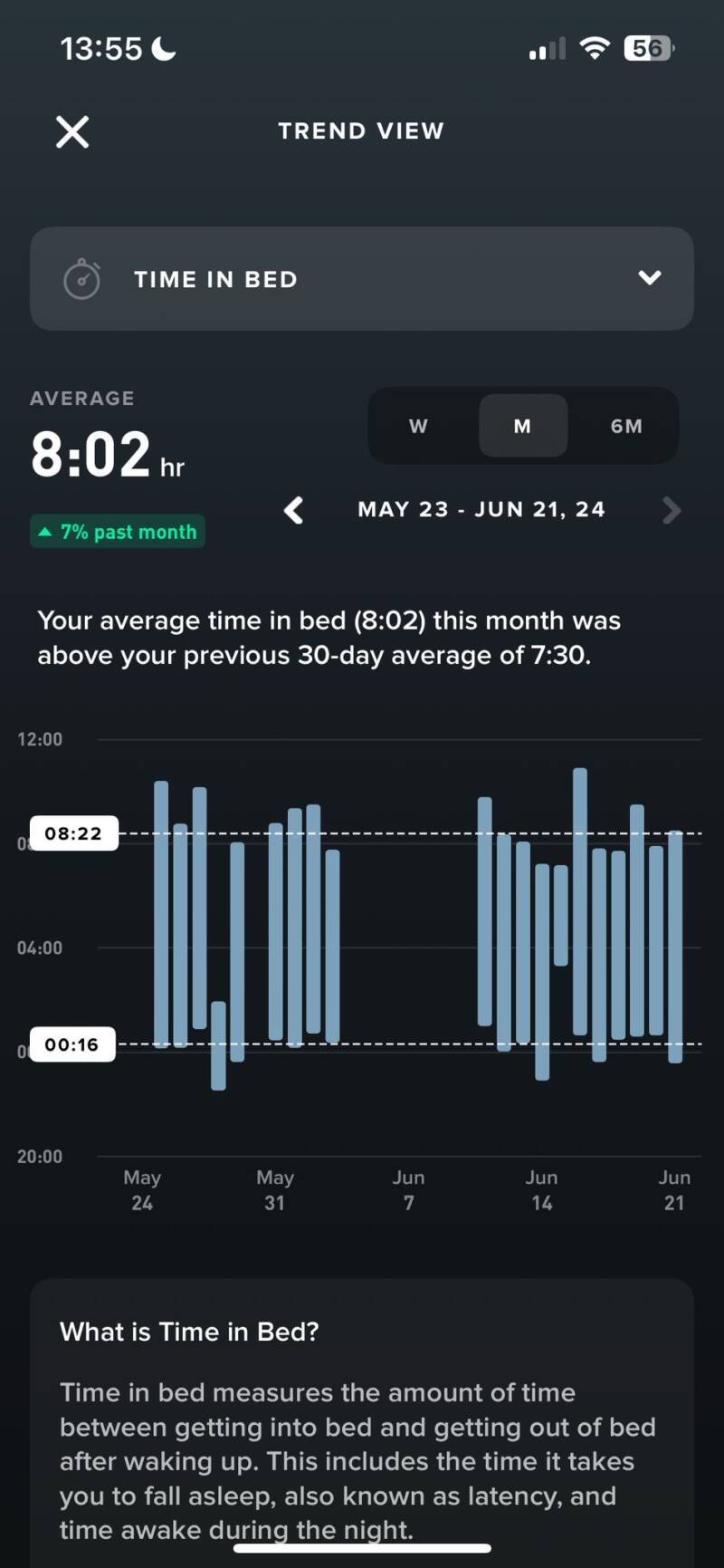 Toepassing met Whoop die ik heb aangeschaft voor dit leerdoel en mijn verdere slaap. Dit was een flinke investering maar dit leerdoel heeft mij het laatste zetje gegeven.